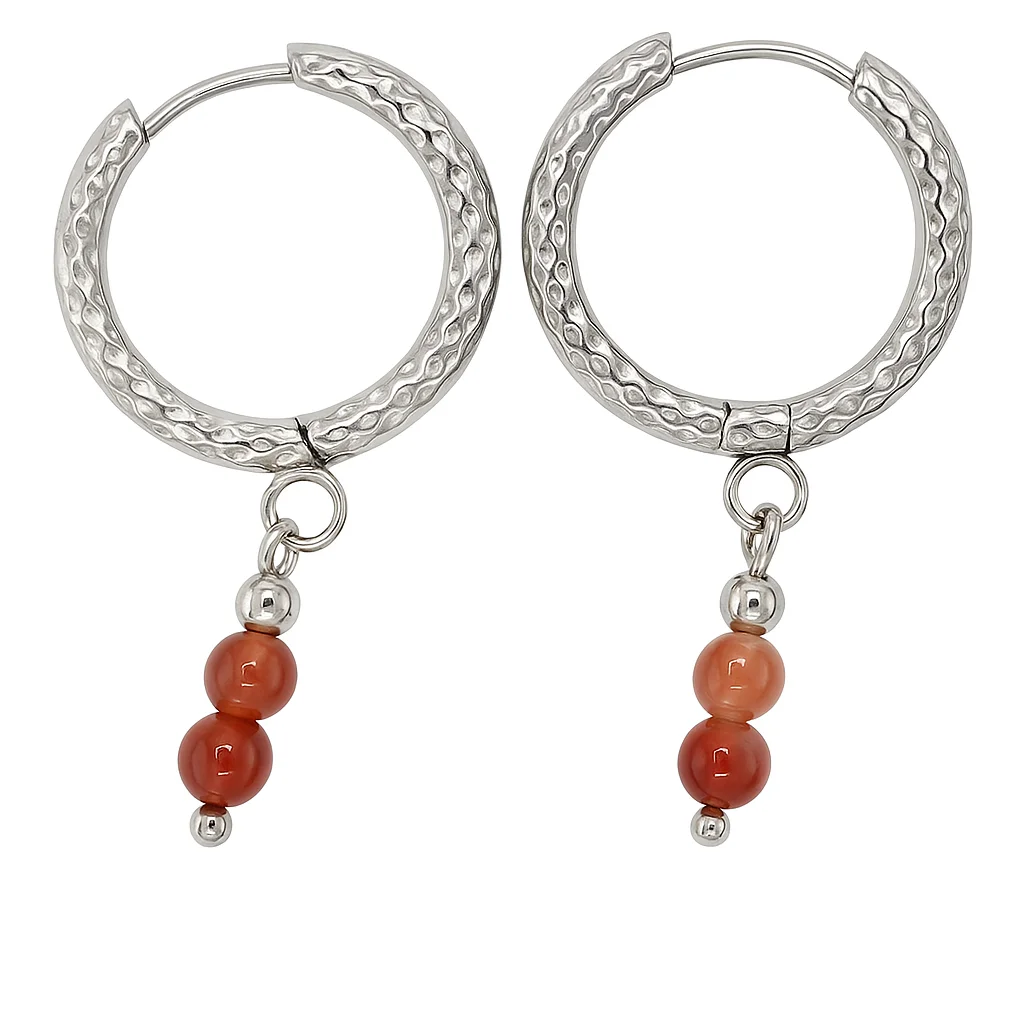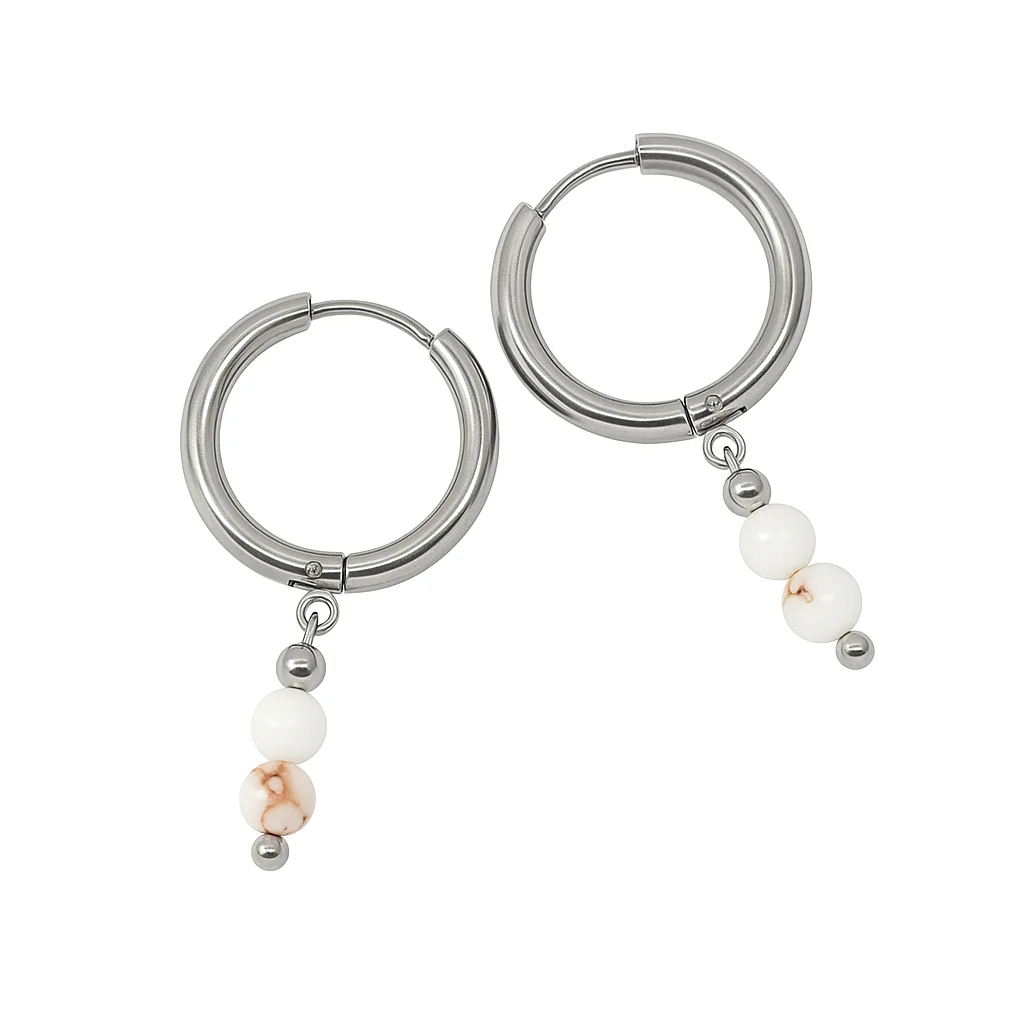 Los Aros con Cuentas y Piedra Natural combinan el brillo del acero inoxidable con la belleza única de las piedras auténticas.
