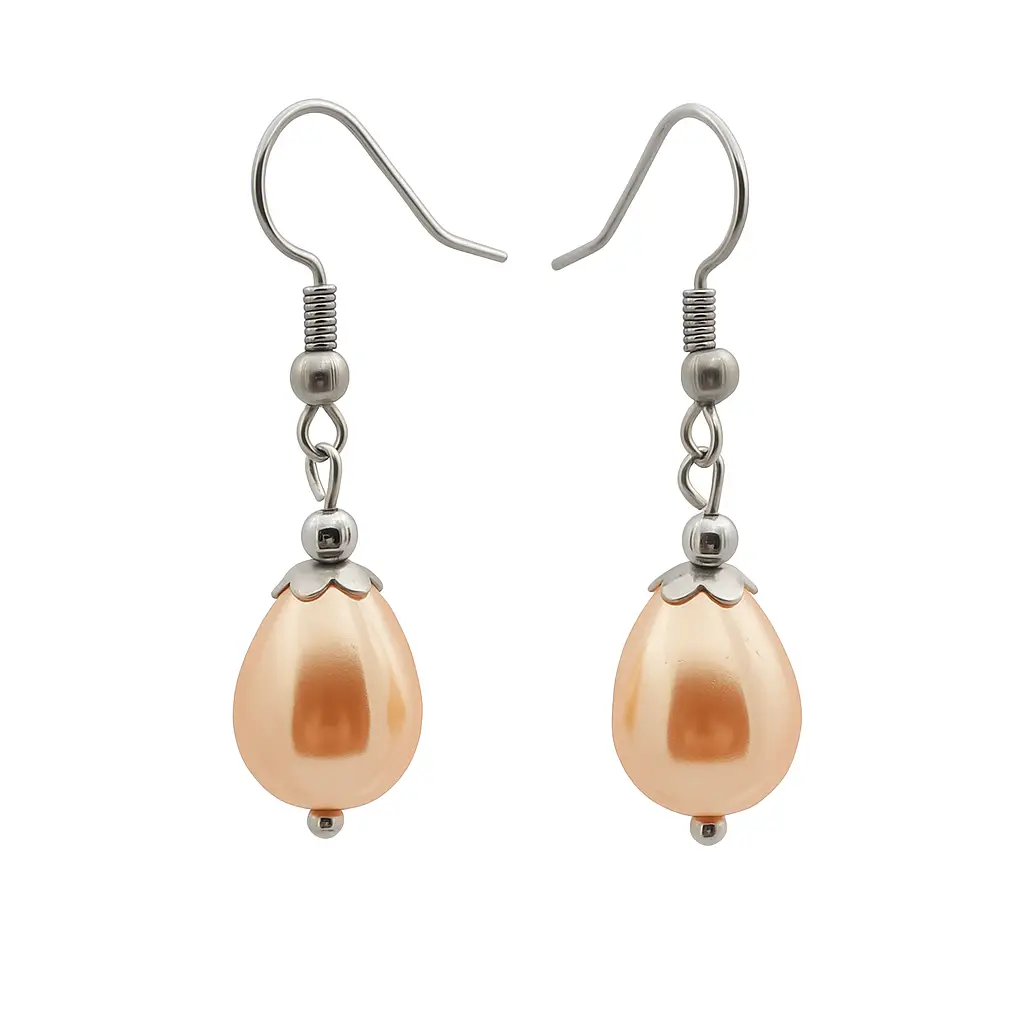 El pendiente colgante con perla en forma de lágrima es una joya artesanal que combina la pureza de la perla natural con la resistencia del acero inoxidable 316.