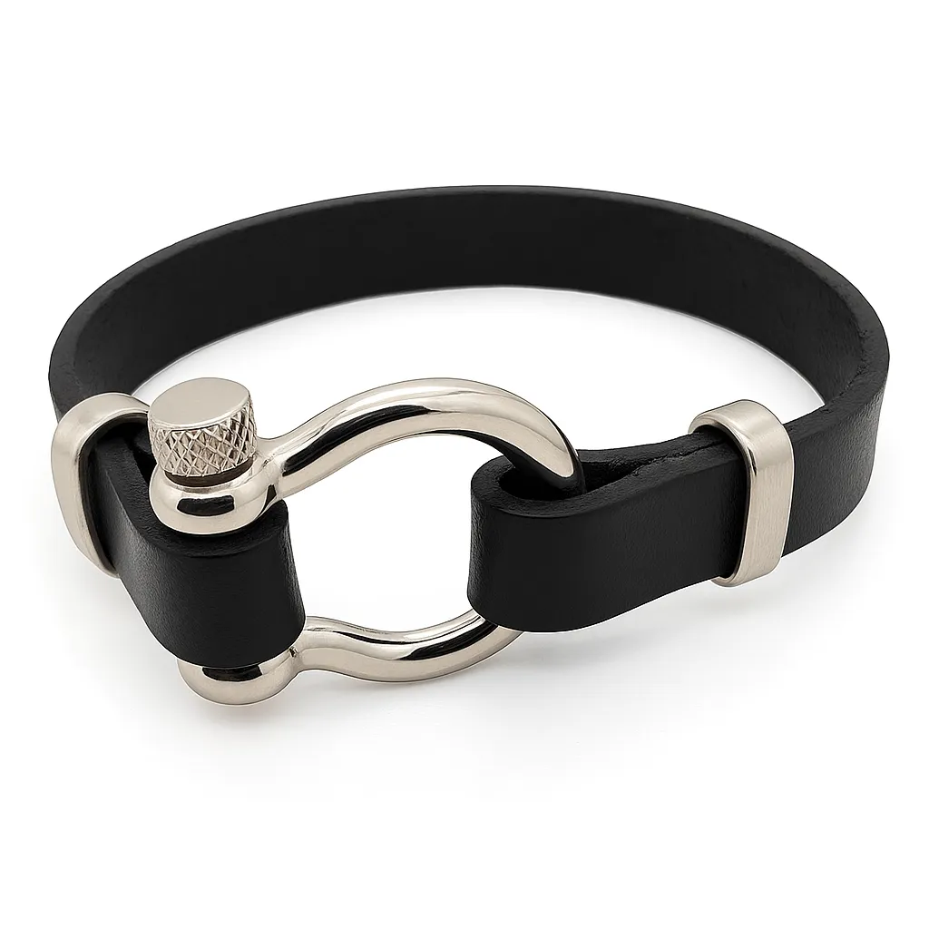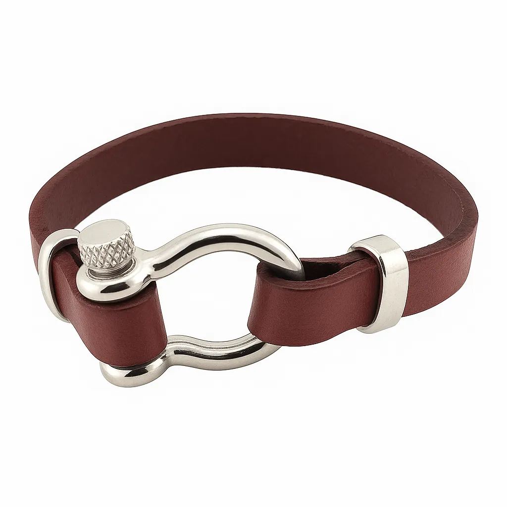 Pulsera de Cuero con Cierre de Grillete de Acero Inoxidable | Estilo náutico y diseño artesanal