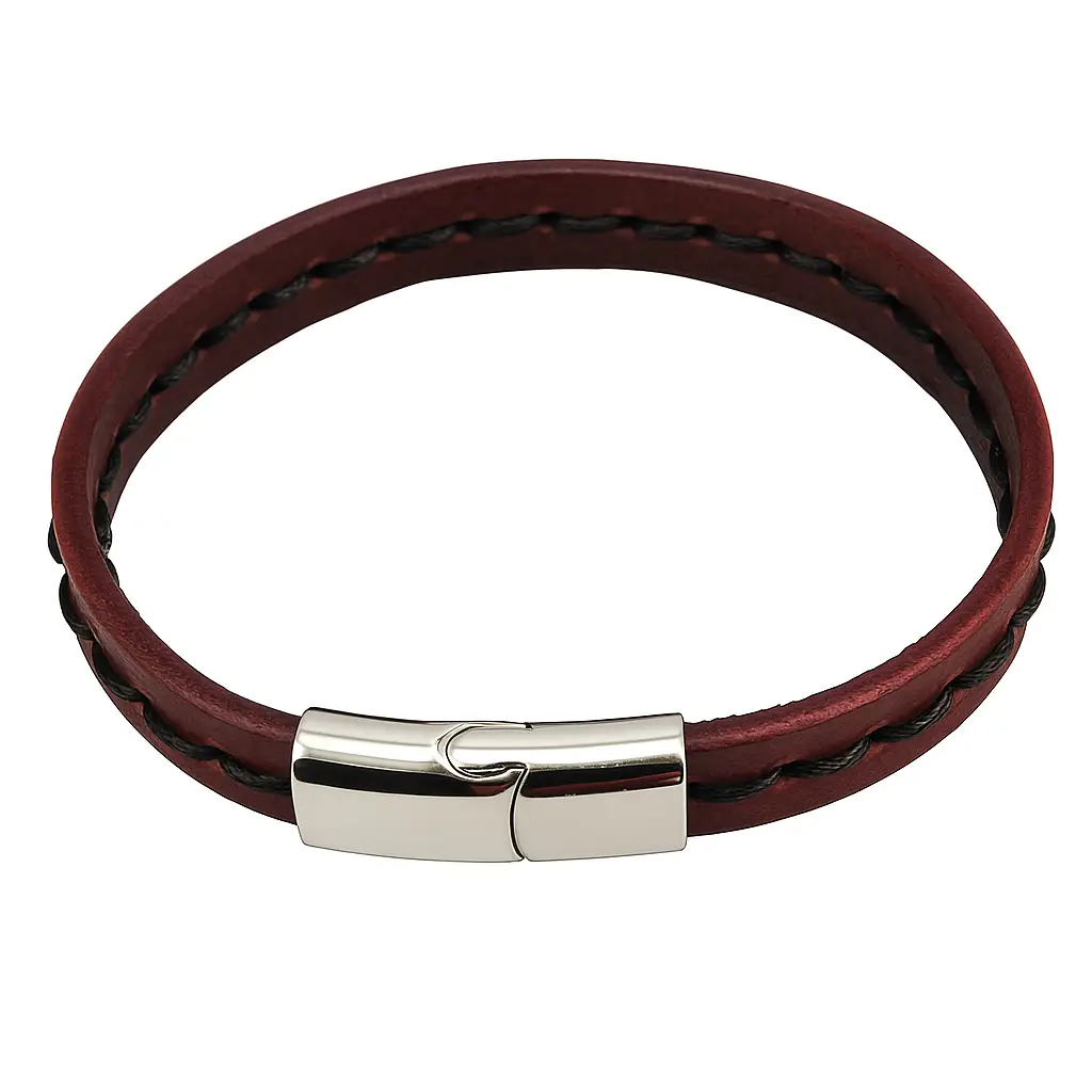 Cuando eliges una Pulsera de Cuero con Pespunte y Acero, adquieres más que una joya: obtienes una obra de artesanía diseñada para durar.