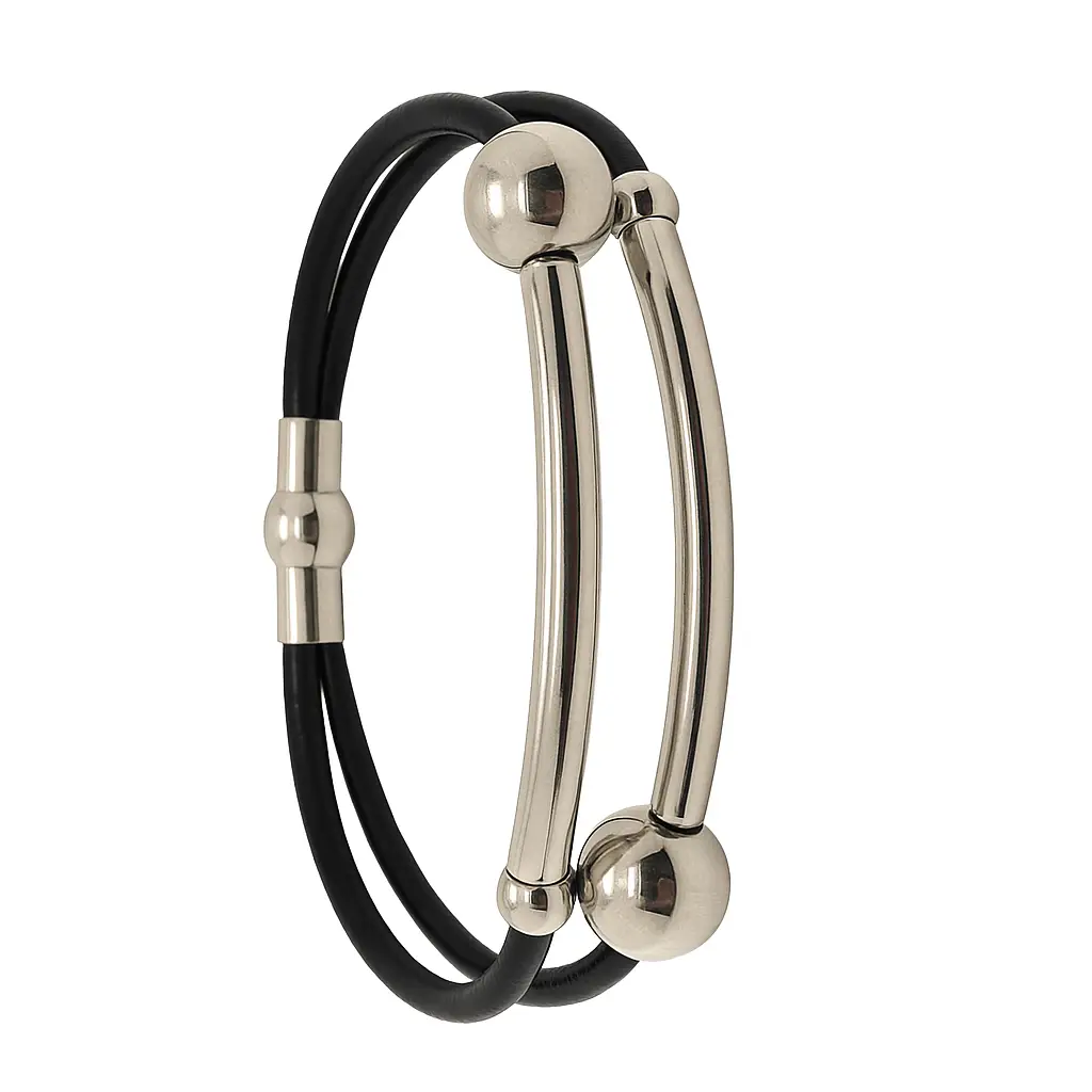 En consecuencia, este Brazalete Doble de Cuero con Abalorios de Acero combina estilo, durabilidad y confort en una joya que trasciende las tendencias.