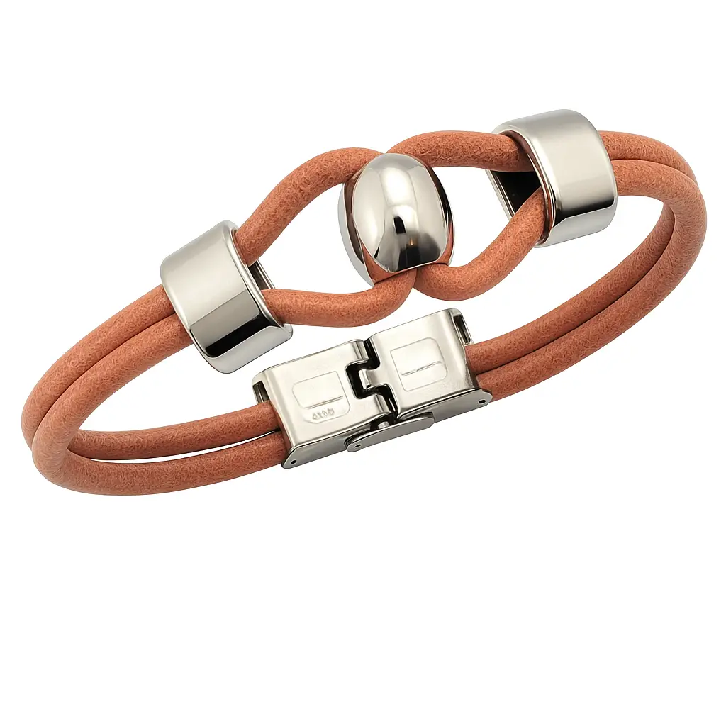 Cuando eliges una Pulsera Nudo Infinito en Cuero y Acero Inoxidable, adquieres una joya diseñada para perdurar.